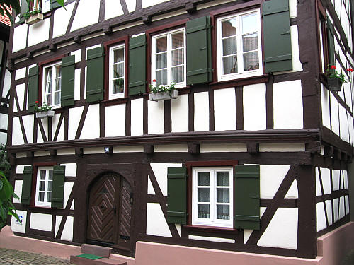 Fachwerkwänden, die nur auf niederen Fundamentmauern aufsitzen.