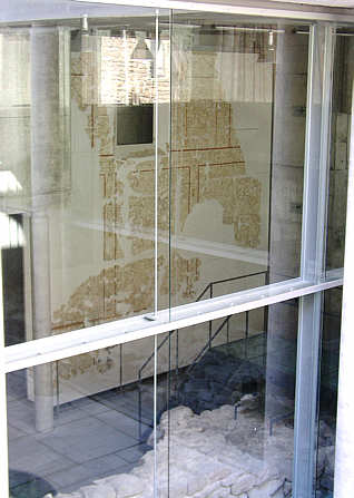 römischen Basilika sichtbar gemacht. Vorn die Außenmauer