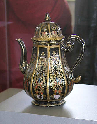 in der Meißener Kaffeekanne der Markgräfin, die in der Mittelvitrine