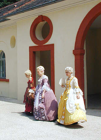 Im Bild: Zwei Mitglieder der Musiker "Agua Viva" und eine Tänzerin von "I Danzatori Palatini"