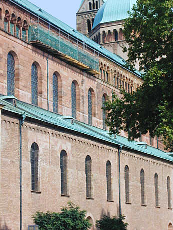 ist dreifach gegliedert:Die Seitenschiffwand enthält große rundbogig geschlossene