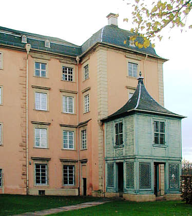 | Schloss Schwetzingen |  | Schwetzinger SchloßBaugeschichteBaunaht zwischen Altbau und Westflügel Am Nordturm angebaut das Arbeitszimmer des Kurfürsten | |||||||