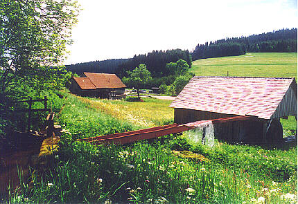Bild: Getreide- (rechts) und Sägemühle (links) des Urishofes im Jostal |