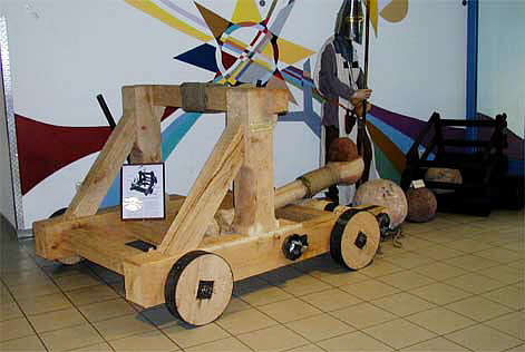 Fahrbares Gerät zum Schleudern von Steinen etc. auf Mauern, um diese duch die Wucht des Aufpralls zu zertrümmern