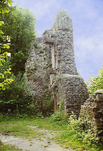 Südseite des Neuen Palas. Im Zentrum der Anschluss an Treppenturm und Hofmauer, oben der Wehrgang.