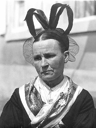 Schleifenkappe auf Tüllschleier; die Schleifen sind schmal und stehen von der Kappe hoch.