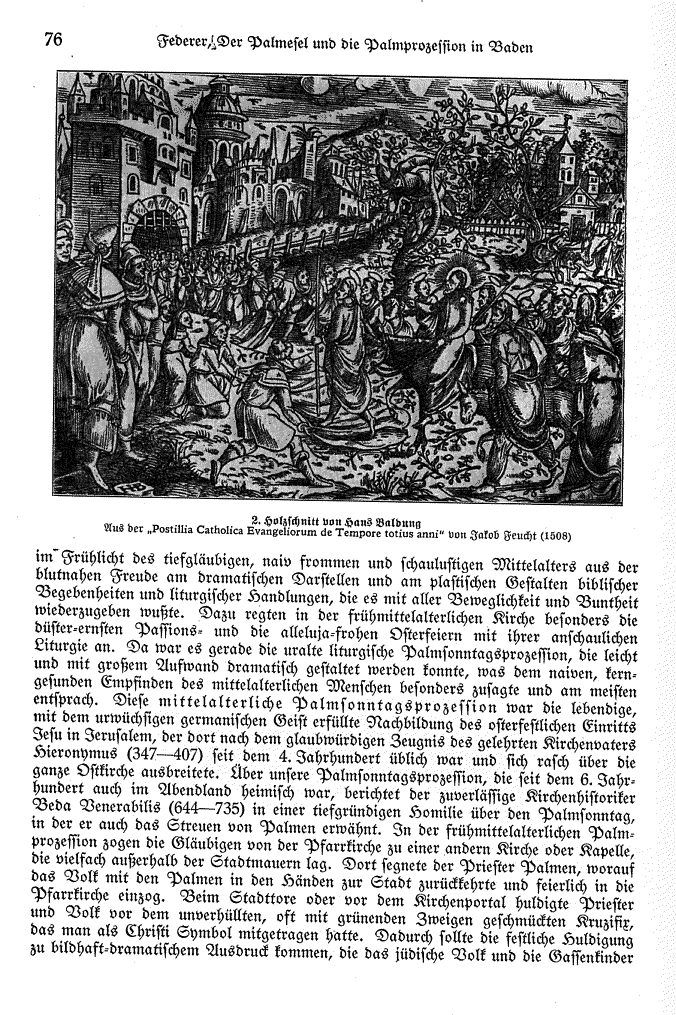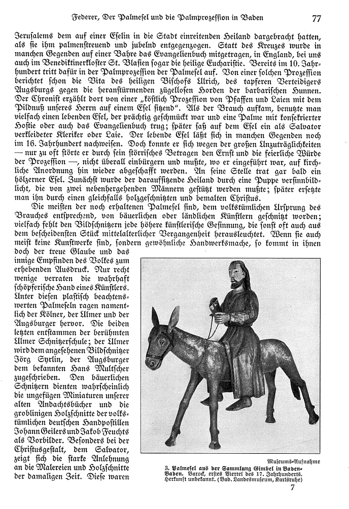 | Fritz Federer: Der Palmesel und die Palmprozession in Baden. Liturgisch, kultur- und kunstgeschichtlich, volkskundlich. Mein Heimatland 21 (1934) S. 75-91 |