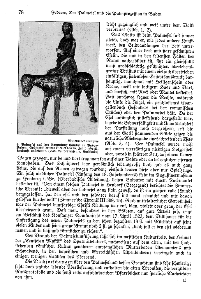 Fritz Federer: Der Palmesel und die Palmprozession in Baden. Liturgisch, kultur- und kunstgeschichtlich, volkskundlich. Mein Heimatland 21 (1934) S. 75-91 |