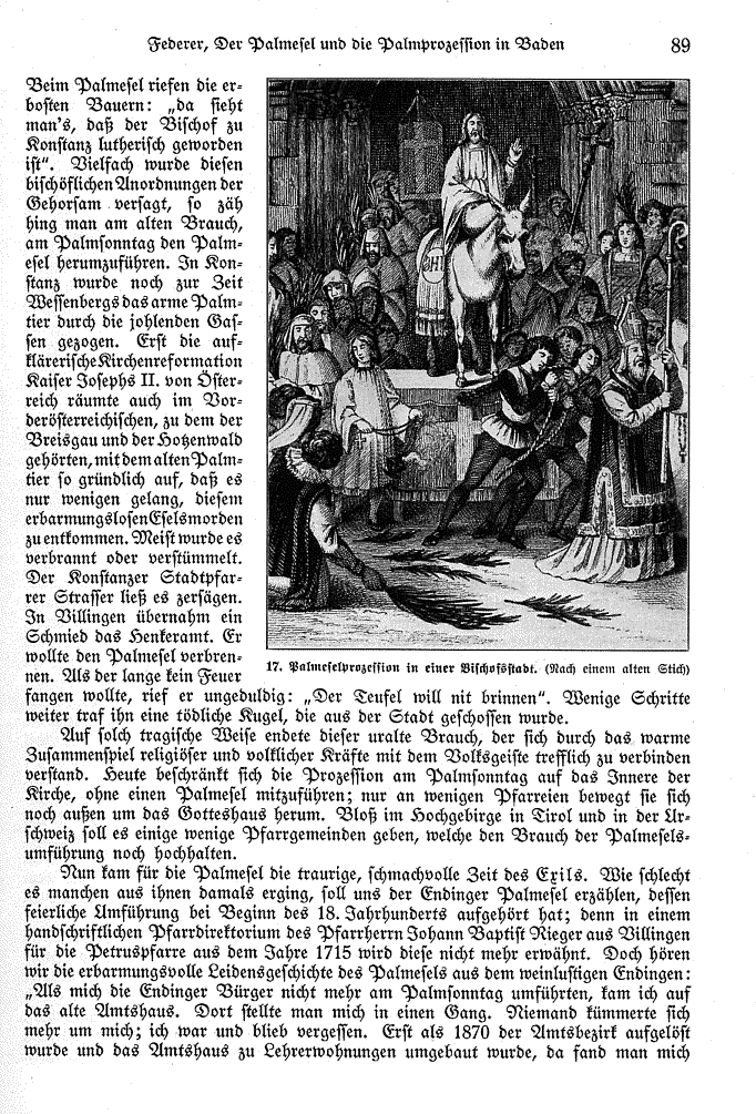 Fritz Federer: Der Palmesel und die Palmprozession in Baden. Liturgisch, kultur- und kunstgeschichtlich, volkskundlich. Mein Heimatland 21 (1934) S. 75-91 |