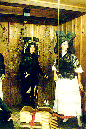 OberrheinischeTrachtenim Schwarzwälder Trachtenmuseum HaslachTracht aus Neuried, zwischen Kehl und Ichenheim, mit der für jüngere und ältere Frauen typischen Flügelhaube, dieallerdings im Vergleich zur Hanauer Haube höher ist und im Ansatz eher an die Hörnerhaube des Kinzigtals erinnert.