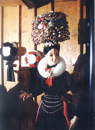 Der größte und schwerste der Schwarzwälder Schäpel. Dahinter an der Wand ein roter und ein schwarzer Rosenhut