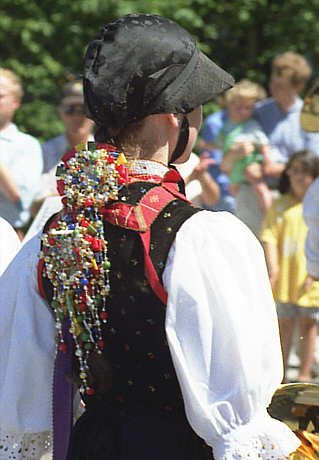 Zopfgehänge aus Glasperlen und kleinen Spiegelchen, die zu einem Zopf verarbeitet sind (Spiegeli genannt).