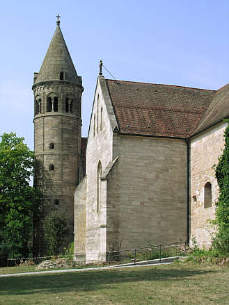Romanischer Bau des beginnenden 12. Jahrhunderts, von dem noch Mittelschiff, Querschiff und Teile des Westbaus erhalten sind. Südlicher Westturm im 19. Jahrhundert rekonstruiert.