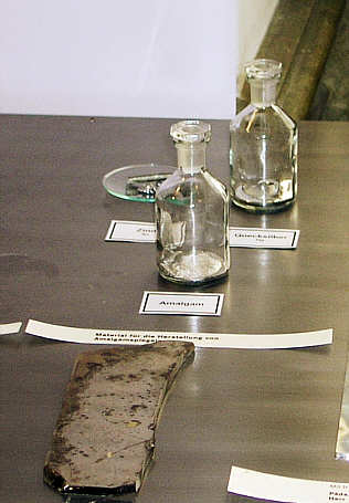 Quecksilber, Quecksilberamalgam und (ganz vorne) ein oxydierter
