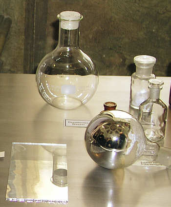 Glaskolben, versilberter Glaskolben und polierte Silberspiegelplatte