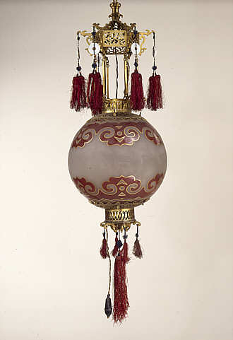 Die Quasten unten, wiederholen sich oben, wo ein Schmuckkranz