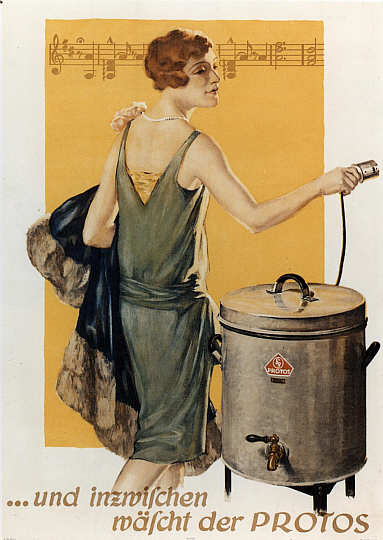 Protos Sprudelwascher Werbegrafik „... und inzwischen wäscht der Protos“, 1928 Repro, Siemens-Schuckertwerke © Siemens Corporate Archives