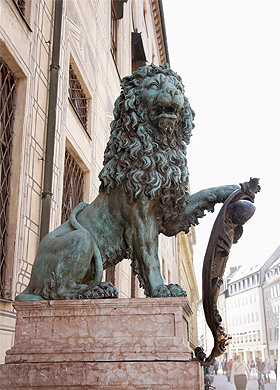 Bild: Bronzelöwe vor der Westfassade der Residenz München