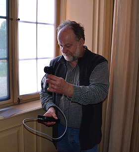 Bild: Restaurator Thomas Merkl bei Messungen im Schloss. Foto: