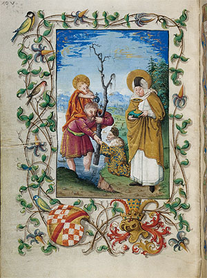Im Begleitprogramm zur Ausstellung präsentierte die Badische Landesbibliothek am 9. Dezember das um 1490 in Paris angefertigte Stundenbuch von Markgraf Christoph I. von Baden (1453–1527). Diese prachtvolle Handschrift, die die zu verrichtenden Gebete nach Tageszeiten ordnet, ist mit eindrucksvollen Miniaturen, reich verzierten Bordüren auf Goldgrund und dekorativen Initialen ausgestattet. Sie gilt heute als das früheste Beispiel für badisch-markgräflichen Buchbesitz in der BLB und ist ein einzigartiges Zeugnis privater Frömmigkeit und fürstlicher Prachtenfaltung im Spätmittelalter. Die Besucher der Ausstellung hatten an diesem Tag die einmalige Gelegenheit, die Aura des mehr als 500 Jahre alten Originals zu erleben.