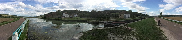 Oben: Panorama-Aufnahme von einer der zahlreichen Schleusen. Natürlich sind die Proportionen völlig verzerrt.