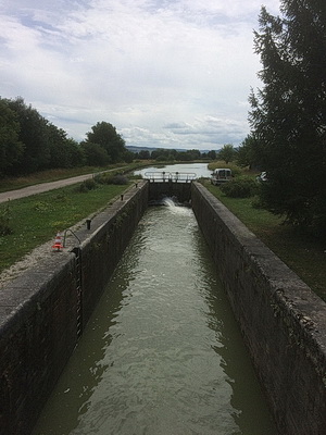 Das Wasser im Kanal ist alles andere als einladend, aber das ist natürlich bei einem solchen Gewässer. Auf ein Bad sollte man also besser verzichten. Zwischen Venarey-les-Laumes und Montbard sind die Schleusenwärterhäusen hergerichtet und zumindest zeitweise bewohnt, zwischen Marigny-le-Cahouët und Venarey sind die meisten leer, unbewohnt und einige auch ziemlich verfallen. Man könnte hier vielleicht sich ein Feriendomizil schaffen - wenn nciht unmittelbar vor dem Haus der Wasserfall der überlaufenden Schleusentore wäre. Der Schiffsverkehr auf dem Kanal hält sich sehr in Grenzen, zumindest auf diesem Teilstück.