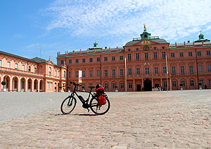 Unten: Residenzschloss Rastatt, Ehrenhof mit Fahrrad anlässlich der #GrandtourBaden2018