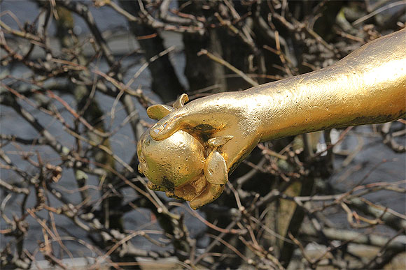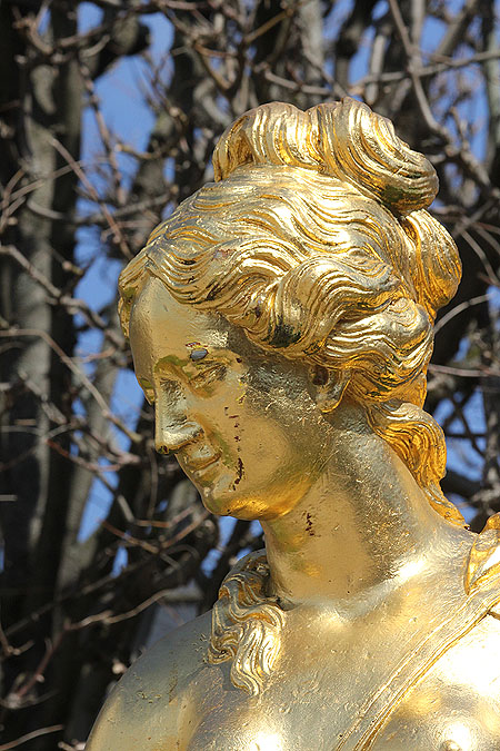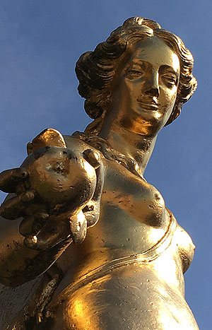 In der Aufstellung nördlich des Schlosses (vor dem Gartenpavillon): Atalante mit einem der goldenen Äpfel.