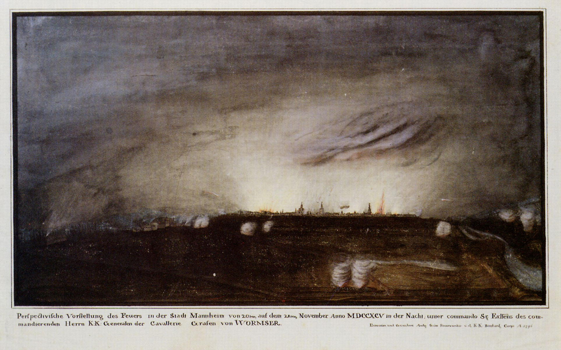 Perspectivische Vorstellung des Feuers in der Stadt Mannheim vom 20ten auf den 21ten November Anno MDCCXCV in der Nacht unter commando Sr. Ex'llens des commandierenden Herrn K.K. Generalen der Cavallerie Grafen von WORMSER.