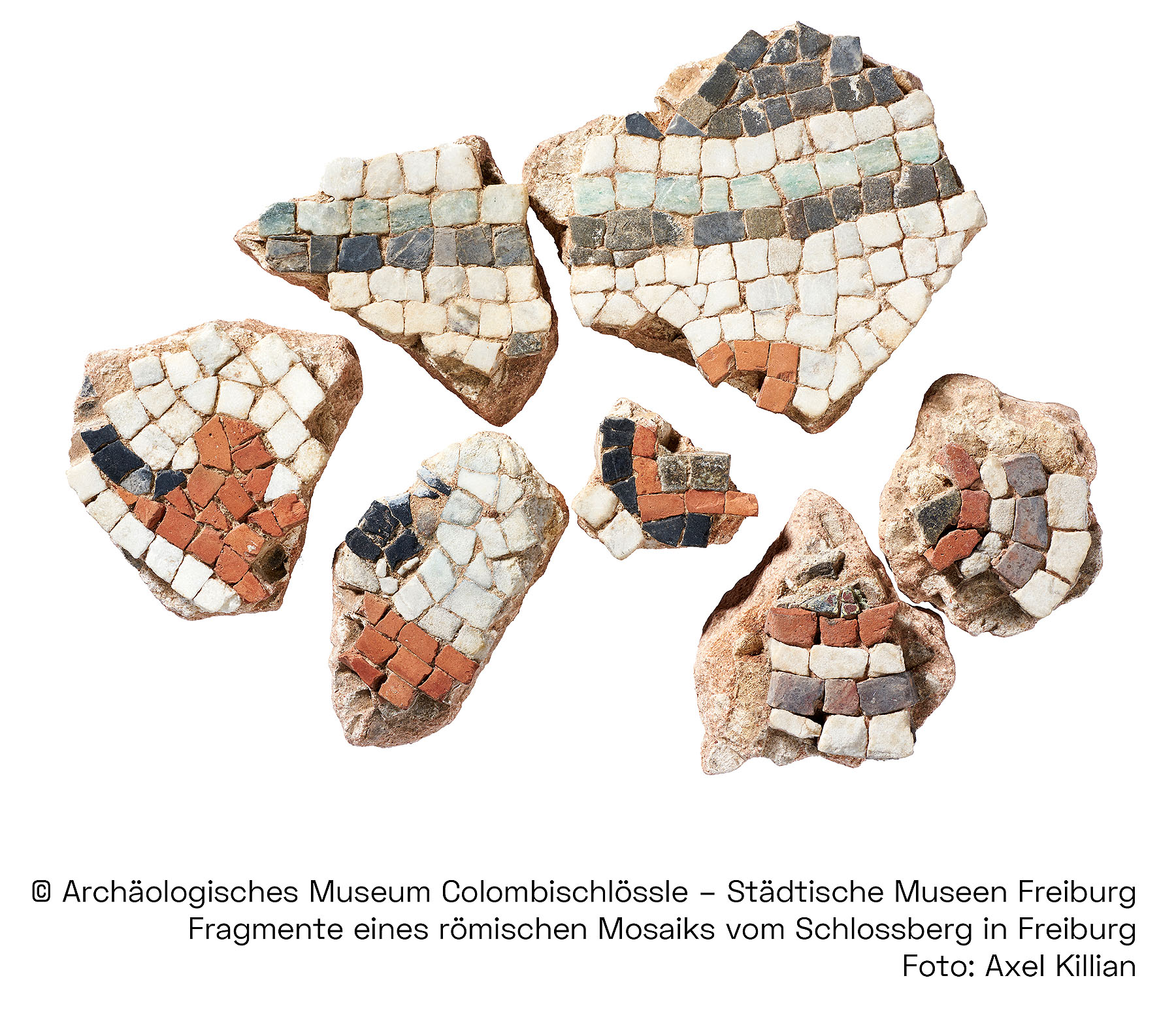 Fragmente eines römischen Mosaiks vom Schlossberg in Freiburg.