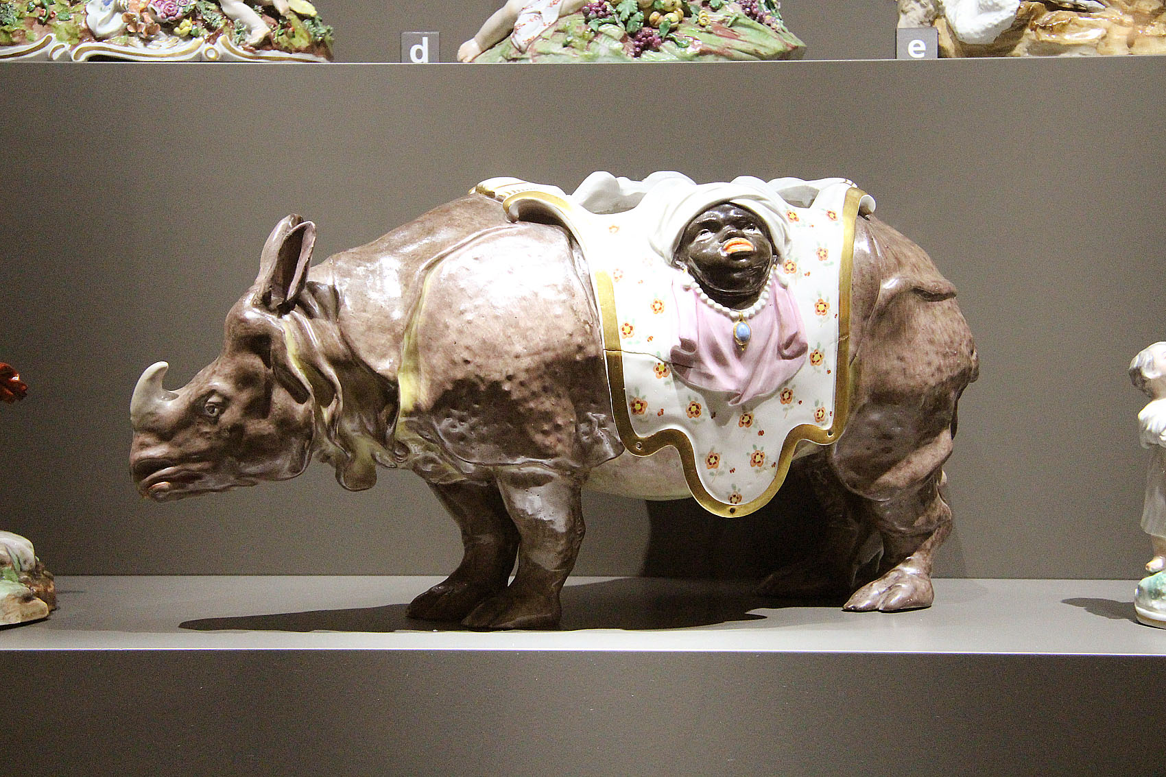 Mannheim, Schlossmuseum: Nashornfigur aus Frankenthaler Porzellan. Foto: kulturer.be