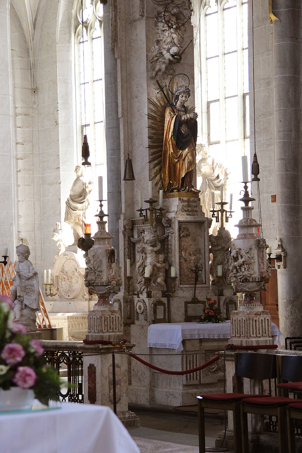 Mater dolorosa im Salemer Münster. Standort (Foto kulturer.be) und Detailaufnahme. (Foto Verwaltung Kloster udn Schloss Salem).