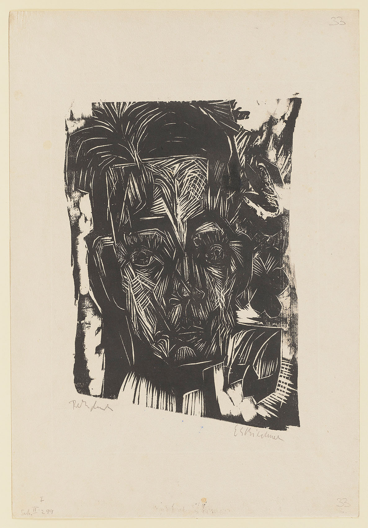 Ernst Ludwig Kirchner, Kopf Robert Binswanger (Der Student), 1917/18. Holzschnitt, 58,9 x 40,5 cm. Städel Museum, Frankfurt am Main