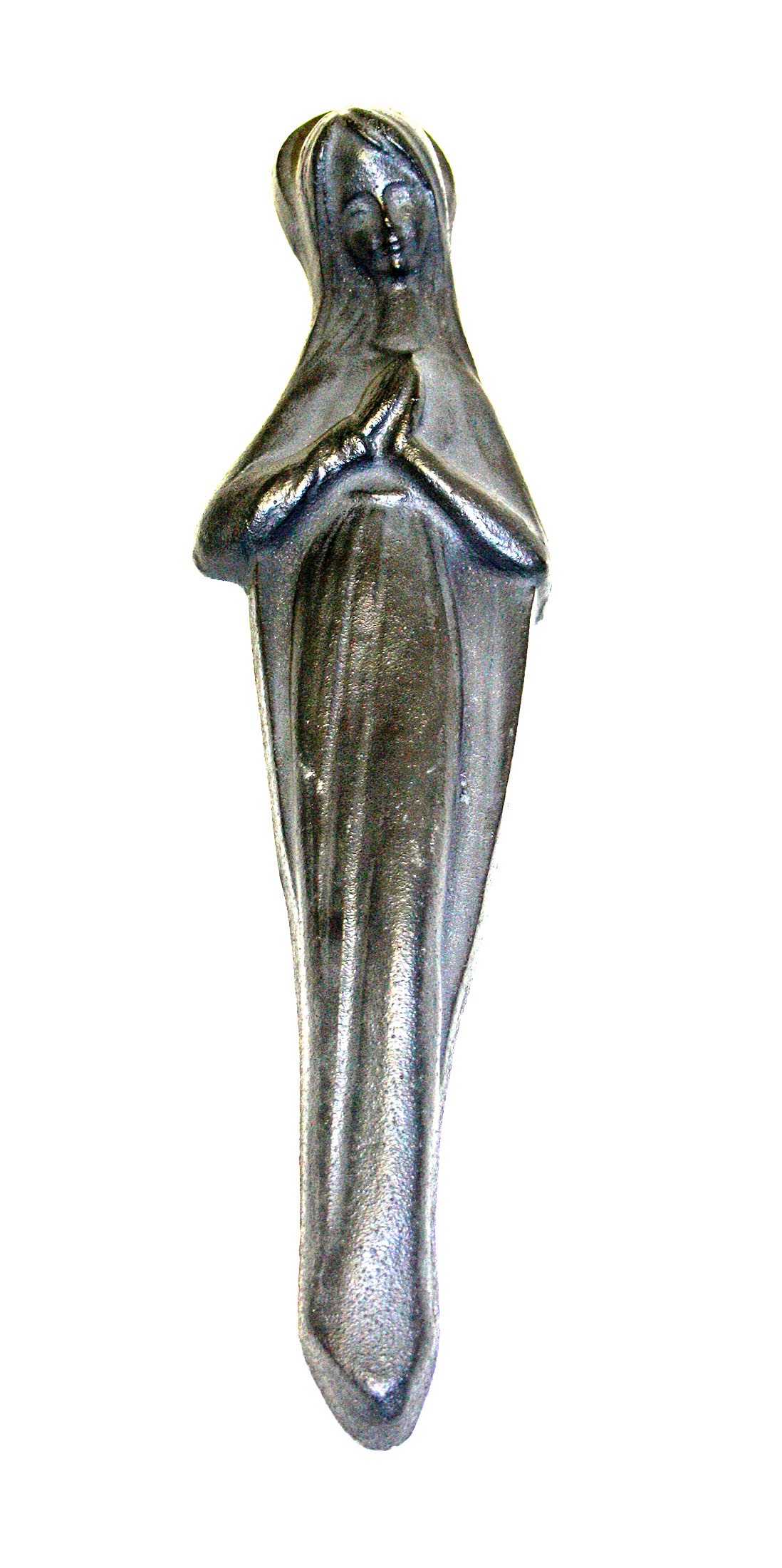 Die gusseiserne Figur zeigt eine junge Frau, die zur Andacht die Hände zusammengelegt hat. Fuß- und Beinpartie sind unter einem einfachen, mit Gürtel versehenen Gewand verborgen. Weitere Attribute sind nicht vorhanden, doch weist gerade dieser Umstand auf die Identifizierung der Darstellung mit der populärsten katholischen Heiligen Maria hin. Damit nimmt das Objekt des Monats Dezember zugleich Bezug auf Weihnachten.