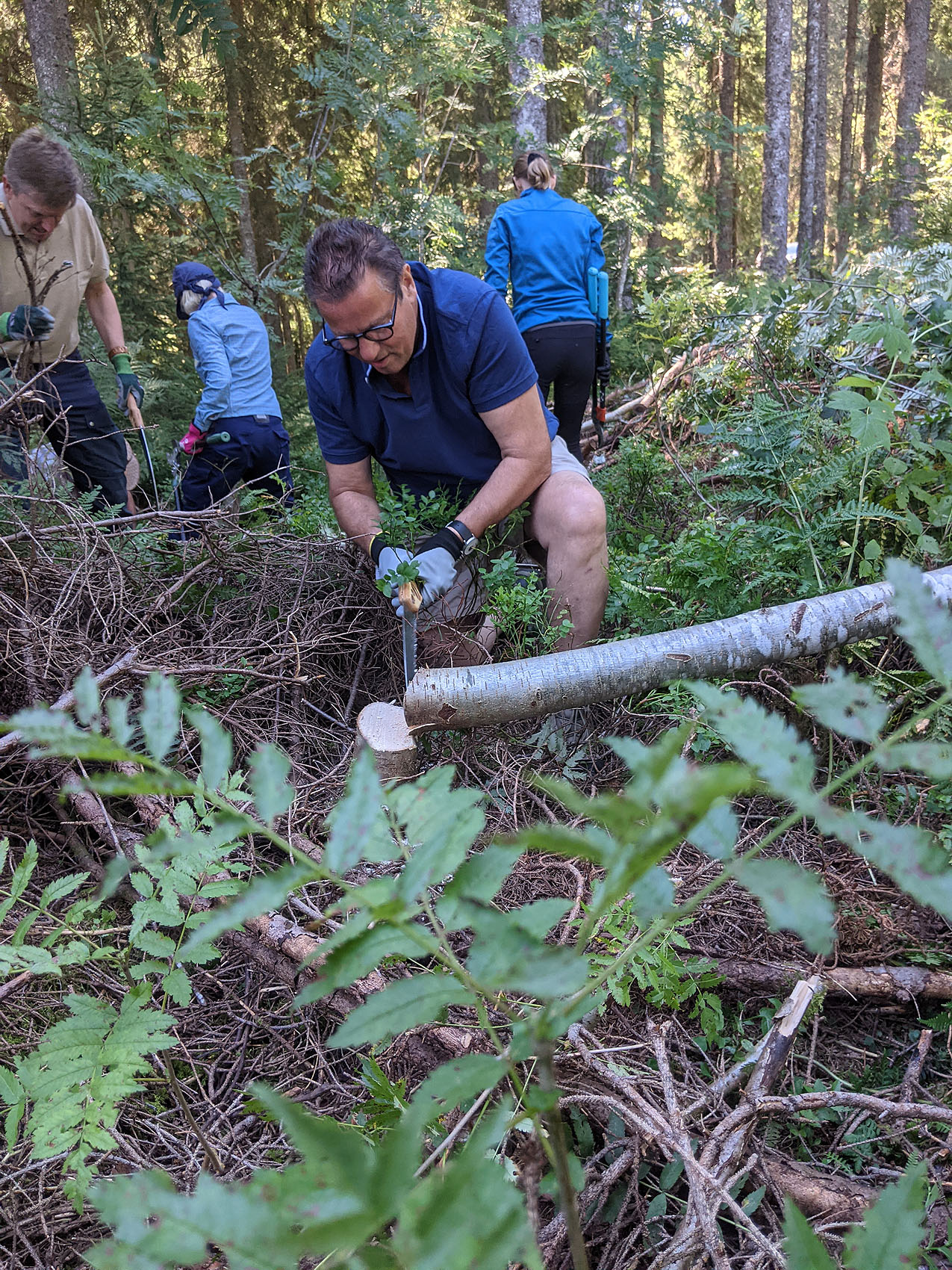 Peter Hauk packte bei seinem Besuch im Naturpark Südschwarzwald selbst kräftig mit an beim Voluntourismus-Einsatz. Bild: Naturpark Südschwarzwald e. V.