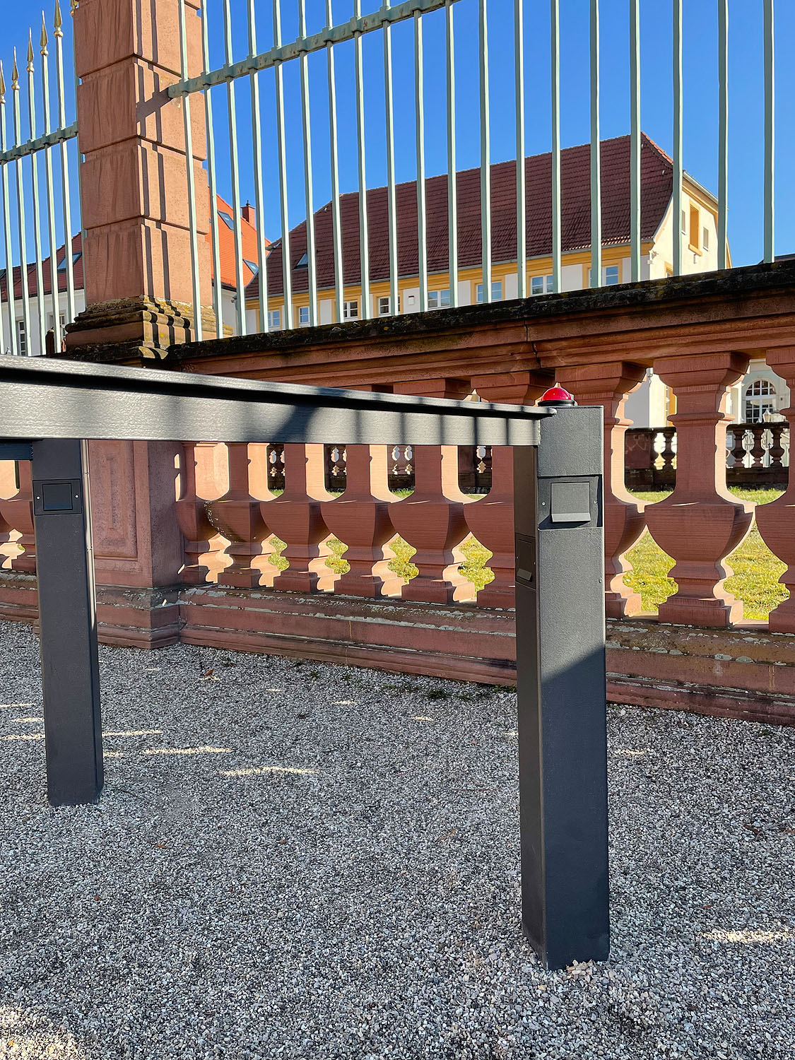 Rechtzeitig zum Start in die Radfahrsaison sind jetzt die neuen Fahrrad- Bogenständer betriebsbereit, Elektrofahrräder können an die Ladestationen angeschlossen und Akkus geladen werden. „Die Bogenständer sind so gestaltet, dass die Ladetechnik in die Bügel integriert wurde und damit von außen nicht sichtbar ist“, erklärt Bernd Müller, der Leiter des Amtes Mannheim und Heidelberg von Vermögen und Bau Baden-Württemberg „Das Innovative der Fahrradständer ist vor allem in ihrer Ästhetik begründet“. Um ein möglichst einheitliches Erscheinungsbild der unterschiedlichen Bügel zu erhalten, wurden die Standardbügel und die Bügel mit Ladestation einheitlich gestaltet und dazu platzsparend konstruiert. Die neuen Bogenständer passen sich in ihrer zurückhaltenden Optik in ihre historische Umgebung ein.