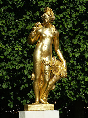 Schlosspark Schwetzingen, Goldene Figur einer Atalante. Heinrich Charrasky, um 1720. Foto: kulturer.be