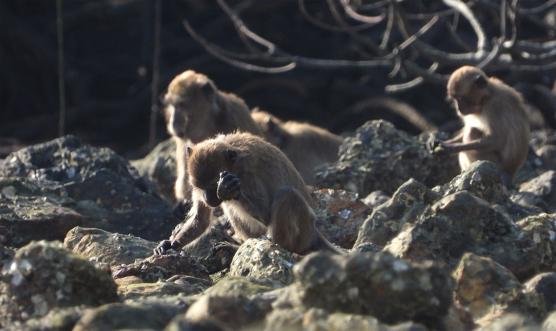 Javaneraffen verwenden Steinwerkzeuge, um an Nahrung zu gelangen. Foto © Lydia V. Luncz