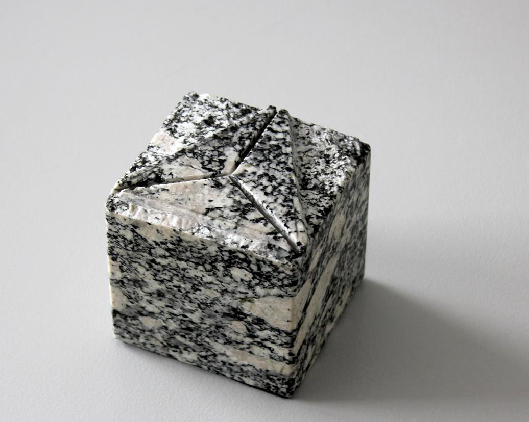 „Überreicht  anläßlich der Einweihung der Fußgängerzone am 2.7.1977“ lautet die knappe  maschinenschriftliche Aufschrift des kleinen, leicht vergilbten Schildchens auf  der Unterseite des Steines. Der Würfel mit einer Kantenlänge von je acht cm ist  aus schwarz-weiß gesprenkeltem Tonalit gefertigt. Seine Oberseite ziert als  Gravur der dem Frankenthaler Stadtwappen entlehnte Eckstein.