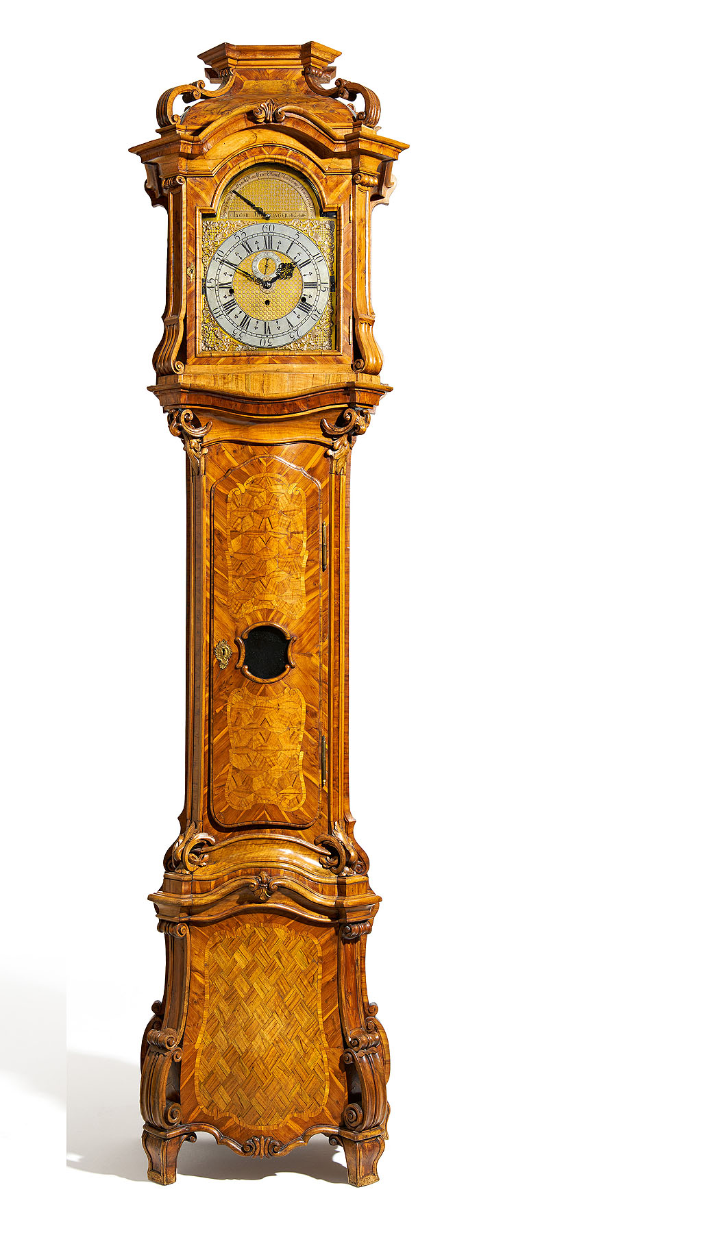 Die beeindruckende Bodenstanduhr mit einem Glockenspielwerk von Johann Jacob Möllinger befindet sich seit dem Jahr 2020 im Besitz der Staatlichen Schlösser und Gärten Baden-Württemberg. Der Uhrmacher und Restaurator Christian Schnurbus ist mit jedem Zentimeter des raffinierten Uhrwerks vertraut und findet daher immer den richtigen Ton. Als Spezialist für historische Uhren hat er schon mehrmals die technische Meisterleistung restauriert und kommt regelmäßig ins Barockschloss Mannheim, um die Bodenstanduhr zu warten. Ihr Glockenspielwerk verfügt über insgesamt zwölf Tanzmelodien mit einer Dauer von jeweils 45 bis 50 Sekunden. Das Ergebnis ist ein einzigartiges Klangerlebnis, das von 14 Glocken erzeugt wird. Ab Dienstag, 26. September können die Besucherinnen und Besucher der Melodie einer Polonaise lauschen.