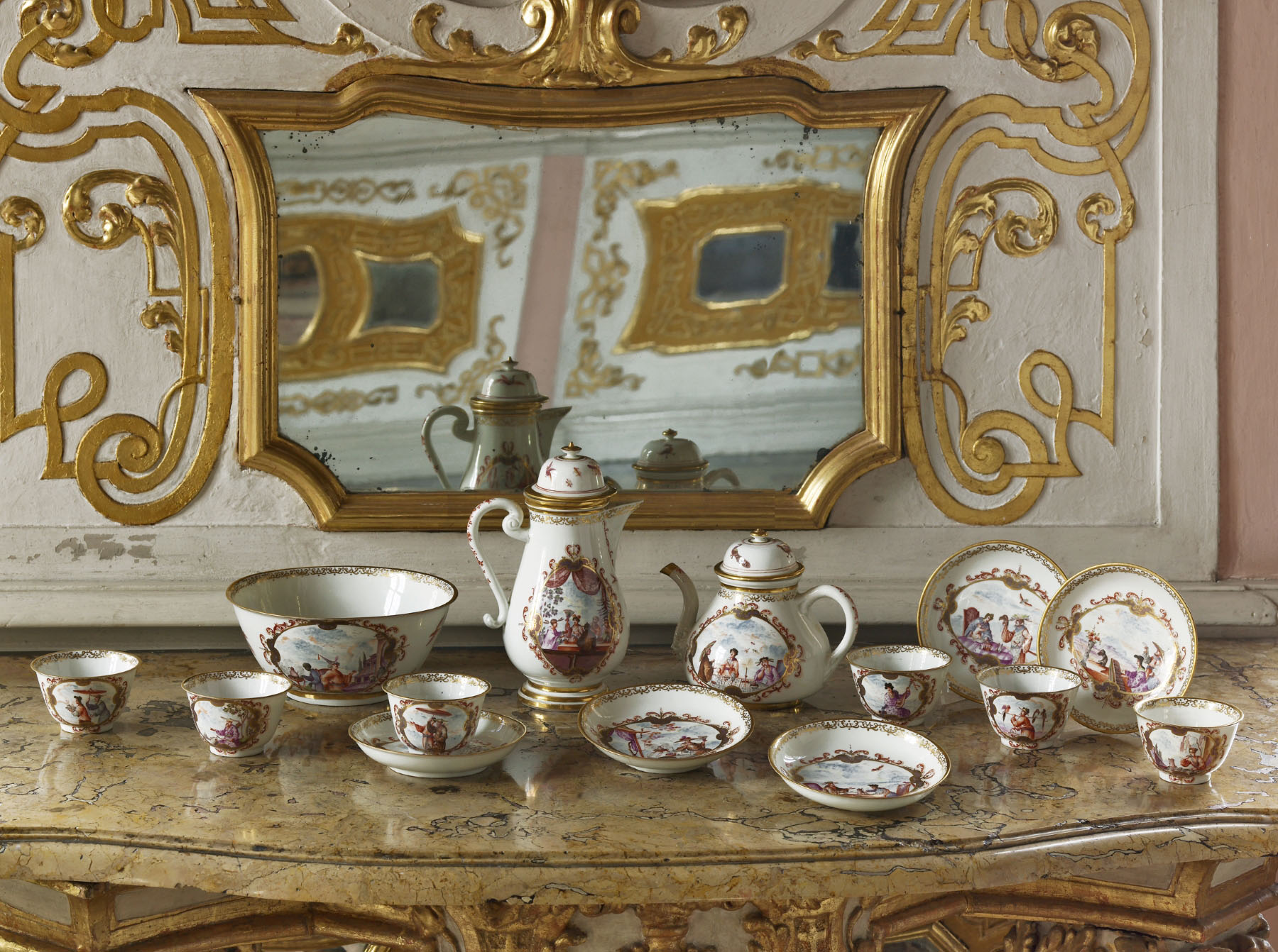 Schloss Favorite, Meißner Porzellan mit Dekor des Porzellanmalers Johann Gregorius Höroldt. Foto: Martine Beck-Coppola/ssg