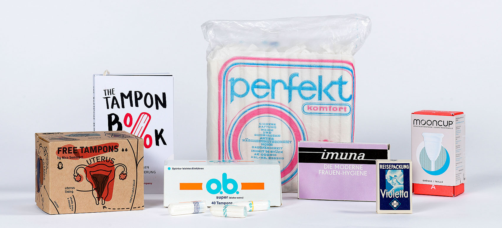 Menstruationsprodukte aus mehreren Jahrzehnten © Staatliche Museen zu Berlin, Museum Europäischer Kulturen / Christian Krug
