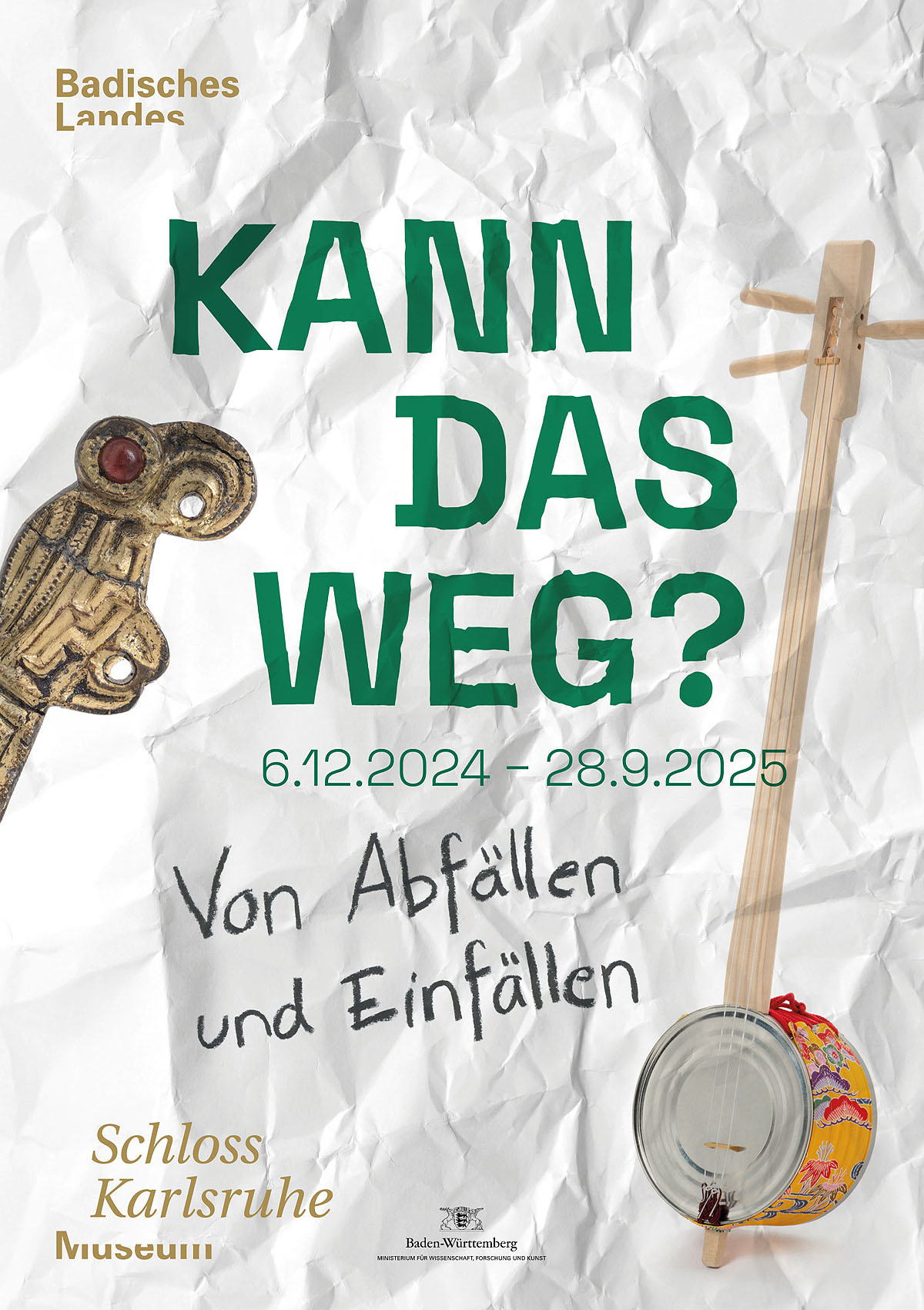 (blm) Ob Kaffee to go, Plastikverpackungen im Supermarkt oder Fast-Fashion im Online-Shop: Unsere Gesellschaft produziert heute mehr Müll als je zuvor – etwa eine halbe Tonne pro Person jährlich in Deutschland. Doch was können wir tun, um der Müllflut entgegenzuwirken? Mit genau dieser Frage haben sich die Volontärinnen und Volontäre des Badischen Landesmuseums auseinandergesetzt und präsentieren ab dem 6. Dezember ihre neue Ausstellung „Kann das weg? Von Abfällen und Einfällen“ im Schloss Karlsruhe. Die Schau bietet kreative Ansätze, wie Ressourcen geschont und Abfälle im Alltag reduziert werden können.