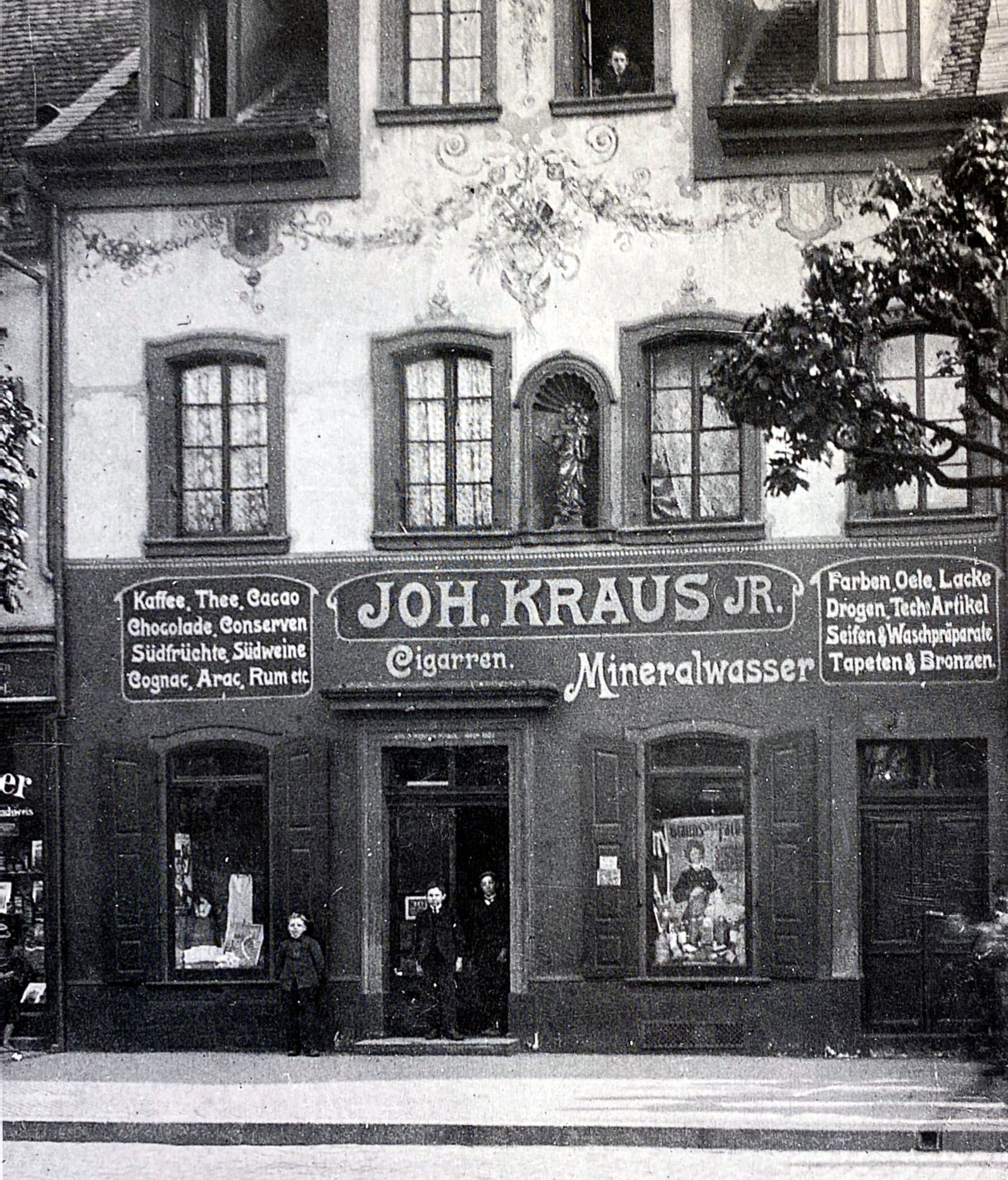 Werner Schäfer ist Mitglied des Frankenthaler Altertumsvereins und des Fördervereins für jüdisches Gedenken sowie Teil des Stadtführerteams des Altertumsvereins. Anhand von zahlreichen Abbildungen zeigt er, wie Schaufenster ein wichtiges Aushängeschild der direkten Werbung waren und bis heute sind. Wichtiger als heute war in der „guten alten Zeiten“ – Ende des 19. bis Mitte des 20. Jahrhunderts – die im Fokus des Vortrags liegt, die Zeitungswerbung als unabdingbarer Bestandteil der Kundenansprache in Stadt und Umland. Es wurde beispielsweise mit ganzen „Waggons voller Porzellan“ oder dem Ankauf von gebrauchten Gebissen geworben. Das Geschäft des Kaufmanns und Gründers des Altertumsvereins, Johannes Kraus, versprach in der Auslage so vielfältige Waren wie Kaffee, Südfrüchte, Rum, Tapeten, Farben und Seifen auf kleinem Raum. Auf historischen Fotos ist an der Fassade des Geschäftshauses noch die Holzskulptur einer Madonna mit Kind als „Himmelskönigin“ zu sehen. Die Figur ist aktuell in der Ausstellung „Willkommen im Museum! Ankäufe und Schenkungen“ im Museum zu sehen, da sie aus den Trümmern der Bombennacht des Zweiten Weltkriegs gerettet werden konnte.