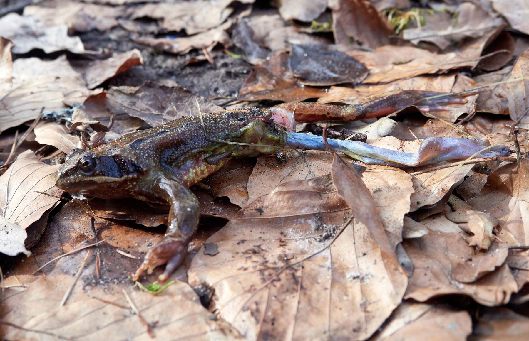 Erlegter Teichfrosch, dessen Bein lediglich gehäutet wurde. Foto: Marion Valentin, ZOWIAC