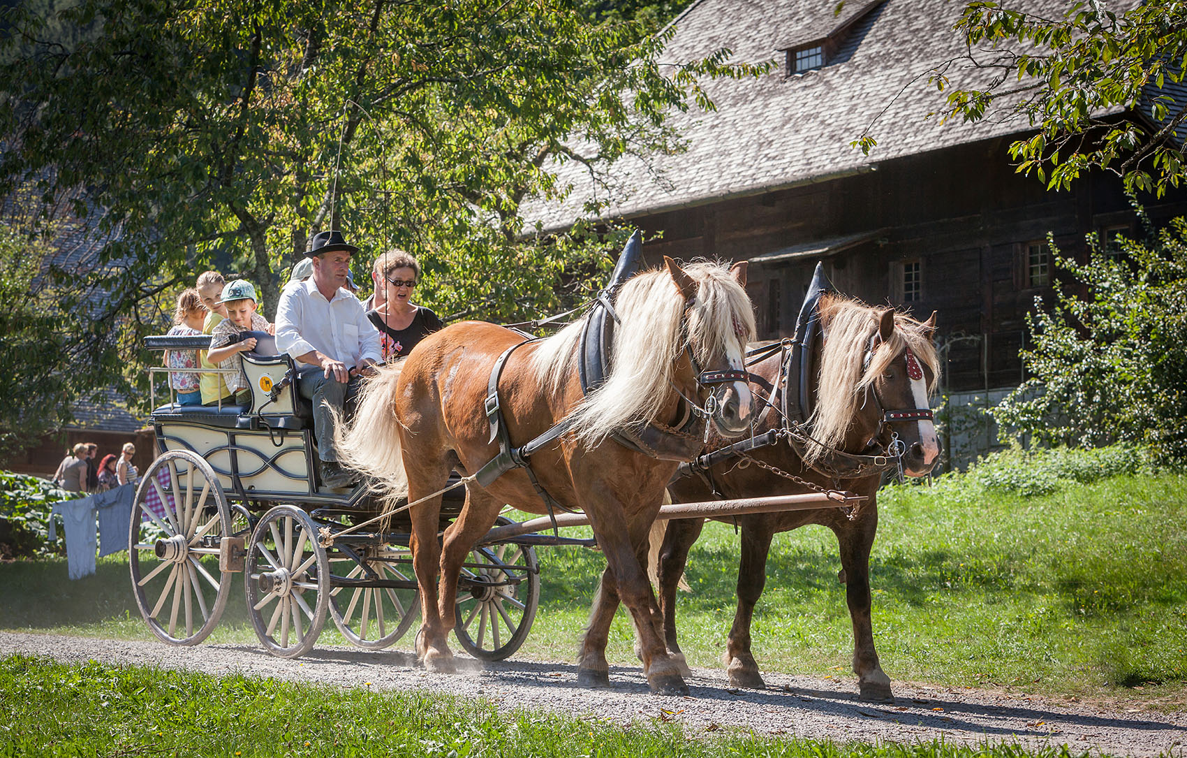 Mit der Pferdekutsche können Besucherinnen und Besucher das Museumsgelände erkunden.