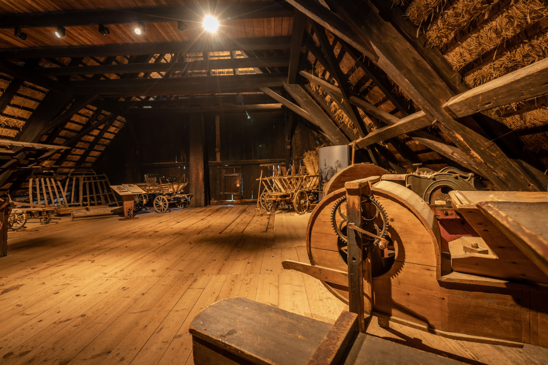 Tenne eines Schwarzwaldhofs mit allerlei Gerätschaften