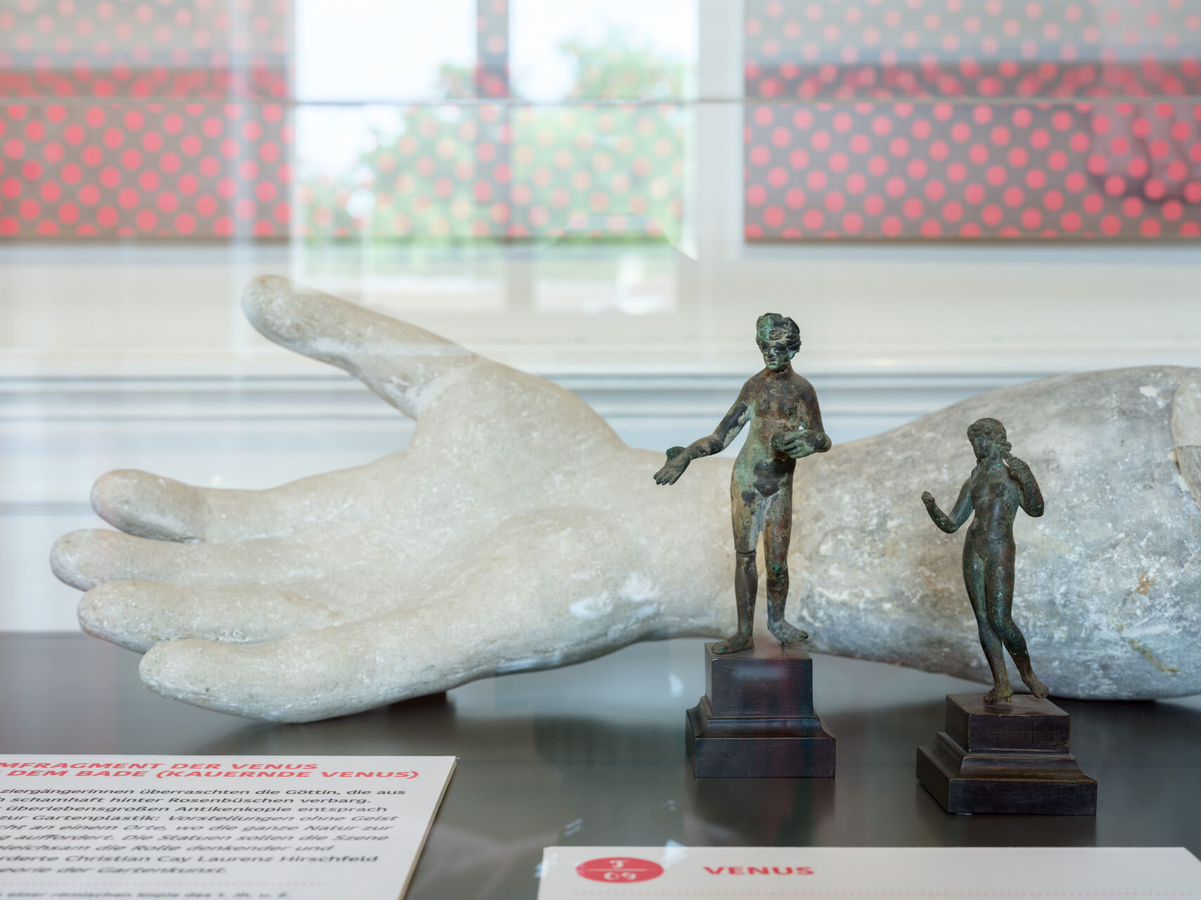 Die Ausstellung lädt dazu ein, die von der Antike inspirierten Tempel und Bildwerke im Wörlitzer Landschaftsgarten mit neuen Augen zu entdecken. Analoge Parkpläne mit einem Postkartensatz oder alternativ ein digitaler Rundgang, der in die neue Gartenreich-App integriert wurde, bieten hier Orientierung.