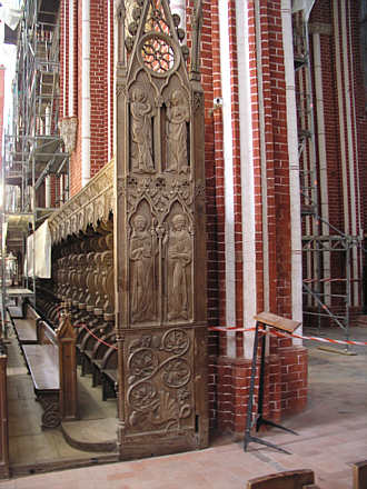 Im Bild: Chorgestühlwange aus der Mönchskirche mit Darstellung