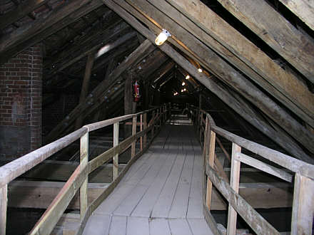 Dachraum des Seitenschiffes mit Laufgang auf den Gewölbekappen